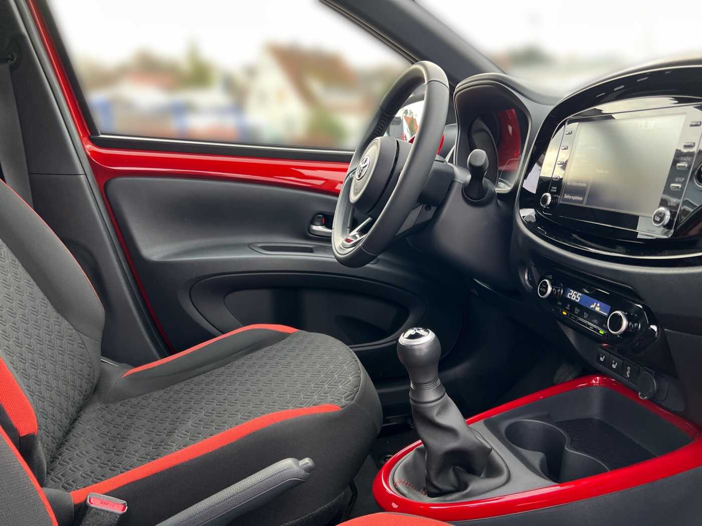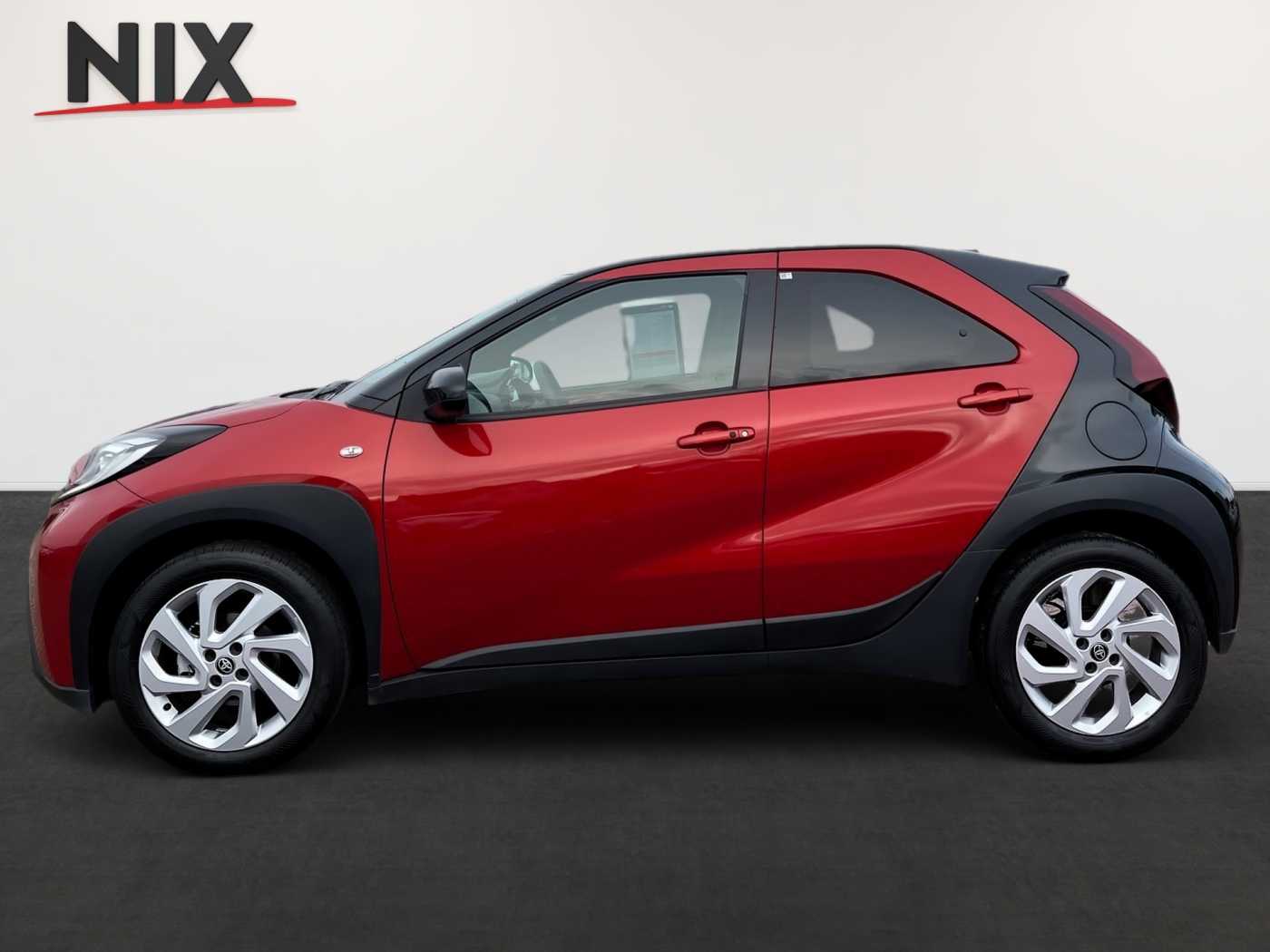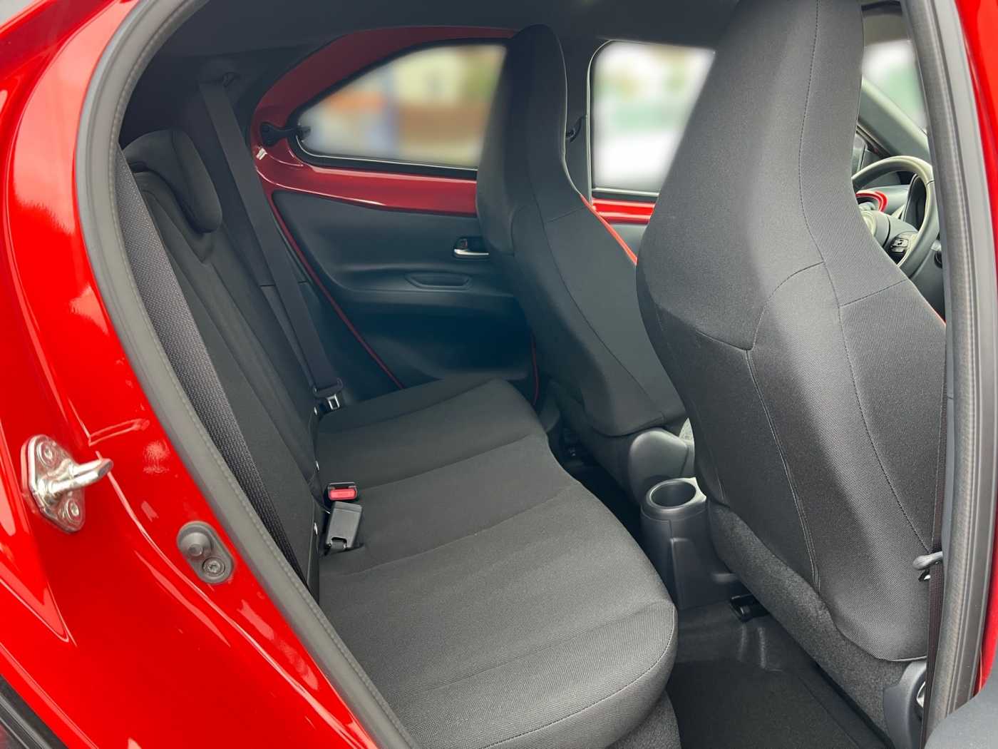 Scheibenwischer mit Regensensor, Klimaautomatik 2-Zonen, Zentralverriegelung / Startanlage Smart-Key, Entry & Drive, Zentralverriegelung, Scheinwerfer LED, Tagfahrlicht LED, Einparkhilfe vorn und hinten, Dach in Kontrastfarbe, Mica-Lackierung, 3. Bremsleuchte, Airbag Fahrer-/Beifahrerseite, Anti-Blockier-System (ABS), Audiobedienung am Lenkrad, DAB-Tuner (Radioempfang digital), Multimedia Display (8,0 Zoll), Freisprechanlage Bluetooth, Bluetooth-Schnittstelle, USB-Schnittstelle, Smartphone-Integration x-connect (Apple CarPlay und Android Auto), Autom. Begleitfunktion der Beleuchtung (Follow me home, FMH), Außenspiegel elektr. verstell- und heizbar, Außenspiegel schwarz lackiert, Nebelscheinwerfer, Elektron. Stabilitäts-Programm mit Antriebs-Schlupfregelung (VSC mit TRC), Fahrassistenz-System: Eco-Anzeige für verbrauchsoptimiertes Fahren, Fahrassistenz-System: Fernlichtassistent (Abblendautomatik Fahrlicht, AHB), Fahrassistenz-System: Sicherheitssystem Toyota Connect mit automatischem Notruf (eCall), Fensterheber elektrisch vorn, Gepäckraumabdeckung / Rollo, Geschwindigkeits-Begrenzeranlage, Geschwindigkeits-Regelanlage (Tempomat) mit Abstandsregelung, Getriebe 5-Gang, Innenraumfilter: Staub- und Pollenfilter mit Aktivkohlefilter, Isofix-Kindersitz-System, Karosserie: 5-türig, Kindersicherung, Kopf-Airbag-System, Kopfstützen hinten, Lenkrad (3-Speichen), Lenkrad (Leder), Lenkrad Applikationen in Pianoschwarz, Lenksäule (Lenkrad) höhenverstellbar, LM-Felgen, Motor 1,0 Ltr. – 53 kW KAT, Park-Assistent mit Rückfahrkamera, Reifen-Reparaturkit, Reifendruck-Kontrollsystem, Rücksitz geteilt, Schadstoffarm nach Abgasnorm Euro 6d, Seitenairbag vorn, Servolenkung elektrisch, Sitz vorn links höhenverstellbar, Sitzheizung vorn, Sonnenblende rechts mit Make-up-Spiegel, Stop&Go-System (TSGS), Stoßfänger Wagenfarbe, Tagfahrlicht LED, Fahrassistenz-System: Verkehrszeichenerkennung (RSA), Fahrassistenz-System: Pre-Collision-System (PCS), Fahrassistenz-System: Spurhalteassistent (LDA), Fahrassistenz-System: Müdigkeitserkennungs-Sensor, Türgriffe außen Wagenfarbe, Türgriffe innen verchromt, Verglasung hinten abgedunkelt, Warnanlage für Sicherheitsgurte hinten, Warnanlage für Sicherheitsgurte vorn, Zentralverriegelung,