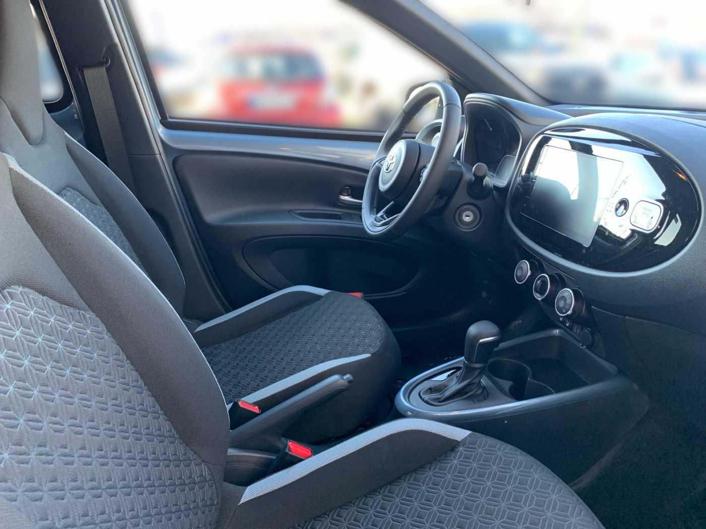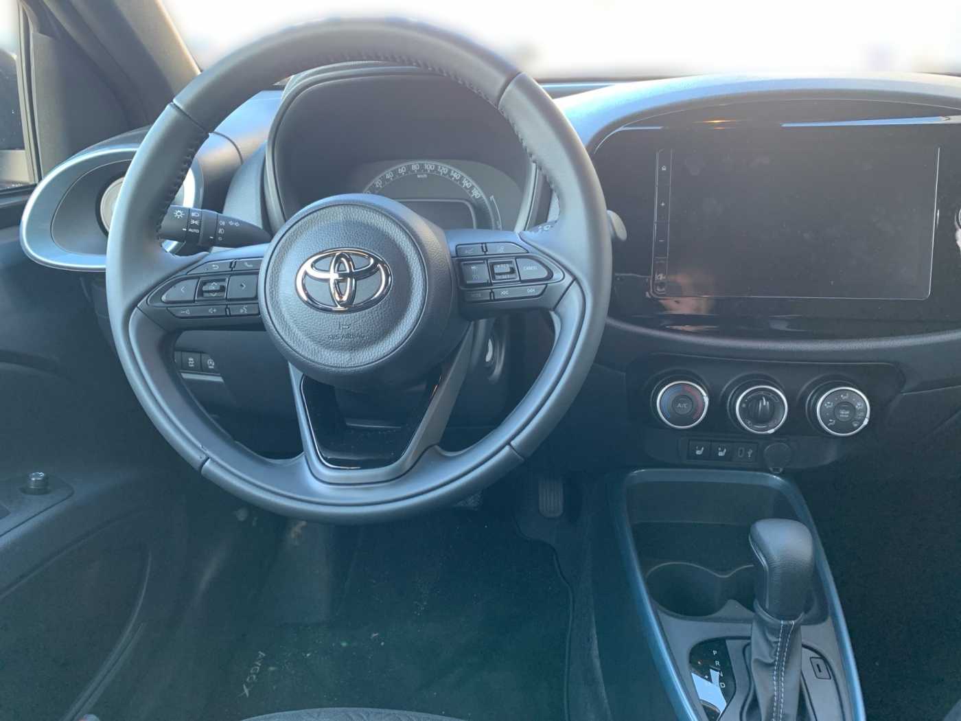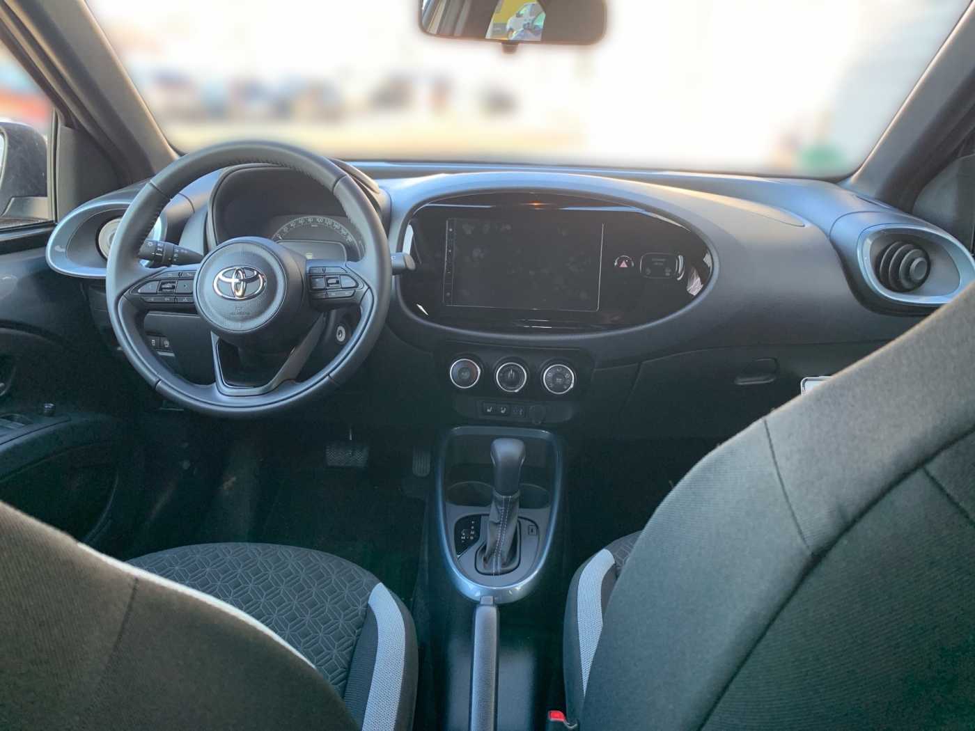 -Bluetooth® Freisprecheinrichtung -Smartphone Integration, Apple Carplay und Android Auto -Lautsprecher 4 -9 Multimedia-Display -USB-C Anschluss -Multimediasystem Toyota Touch -Geschwindigkeitsregelanlage adaptiv -Türverriegelung mit Kindersicherung hinten -Lenkradbedienung für Spurhalteassistent -Geschwindigkeitsbegrenzer -Rückfahrkamera mit statischen Orientierungslinien -Antiblockiersystem (ABS) mit elektronischer Bremskraftverteilung (EBD) -Airbags (6): -Gurtwarnsystem hinten, optisch und akustisch -Pre-Collision System (PCS) mit Fußgänger- und Radfahrererkennung -Dynamisches Bremslicht -Fahrer Aufmerksamkeitsassistent -Spurverfolgungsassistent -eCall Notrufsystem -Verkehrszeichenerkennung (RSA) -Traktionskontrolle (TRC) -Kreuzungs-Assistent (Fußgänger- und Fahrzeugerkennung beim Überqueren einer -Kreuzung) -Reifendruck-Warnsystem (TPWS) -Gurtwarnsystem vorne, optisch und akustisch -Rückfahrkamera, Orientierungslinien statisch -Stoßfänger vorne in Wagenfarbe -Bi-Tone Lackierung -Außenspiegel, beheizbar -Außenspiegel, elektrisch einstellbar -Türgriffe in Wagenfarbe -Frontgrill oben in piano schwarz -Außenspiegel, piano schwarz -Innenraumbeleuchtung, zentral -Frischluftfilter -Start-/Stop-Automatik -Lenkrad Applikationen in piano schwarz -Lenkradbedienung der Adaptive Geschwindigkeitsregelanlage -Türöffner innen vone in chrome -Rücksitzlehne 50:50 geteilt umklappbar -Lenkradbedienung der Bluetooth-Freisprecheinrichtung -Fahrersitz höhenverstellbar -Klimaanlagensteuerungs-Applikationen Chrom -Lenkrad manuell höhenverstellbar -Türöffner innen hinten schwarz -Schminkspiegel auf der Beifahrerseite -Lenkradbedienung der Audioanlage -Getränkehalter hinten -Innenspiegel, abblendbar -Lenkradbedienung des Multi-Info-Bildschirm -Schminkspiegel auf der Fahrerseite -Multi-Info-Display 4,2 -12 V Anschluss vorne -Kopfstützen hinten (2) -Lenkradbedienung der Sprachsteuerung -Getränkehalter vorne -Gepäckraumabdeckung -Pollenfilter -Sitzheizung Fahrer und Beifahrer -Lenkrad, Leder 3-Speichen -Lenkradbedienung für Geschwindigkeitsbegrenzer -Zentralverriegelung -Klimaanlage, manuell -ISOFIX-Kindersitzbefestigung -Servolenkung, elektrisch -Halogen-Scheinwerfer -Manuelle Scheinwerferhöhenverstellung -Abblendlichtautomatik -Heckscheibenheizung -LED-Tagfahrlicht -Privacy Verglasung an den hinteren Seitenschscheiben -Follow-me-Home Funktion in die Hauptscheinwerfer integriert -Privacy Verglasung an der Heckscheibe -Fensterheber, elektrisch vorne -Scheibenwischer mit variabler Intervalleinstellung -3. Bremsleuchte LED -Fernlicht Assistent (AHB) -Nebelscheinwerfer Halogen,
