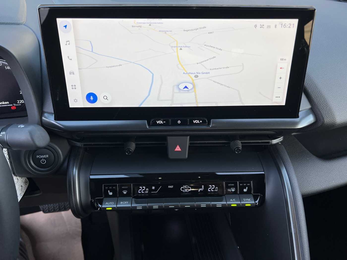 -18'' Leichtmetallfelgen, -Pre-Collision-System mit Verkehrsteilnehmererkennung -Fahrer Knieairbag -Proactiver Fahrassistent (PDA) -Rückfahr-Assistent (RCTA) -Antiblockiersystem (ABS) mit elektronischer Bremskraftverteilung (EBD) -Ausstiegs-Assistent (SEA) -Einparksensoren, vorne, mit automatischer Bremsunterstützung -Pre-Collision-System mit Verkehrsteilnehmererkennung -Airbag, Beifahrer/Fahrer seitlich -Gurtkraftbegrenzer & Gurtstraffer für Fahrer und Beifahrer -Elektronische Stabilitätskontrolle (VSC) -Rückfahrkamera -Einparksensoren hinten, mit automatischer Bremsunterstützung -Dynamisches Bremslicht -Feststellbremse, elektrisch -Spurverfolgungs-Assistent (LTA) -Berganfahrhilfe (HAC) -Verkehrszeichenerkennung (RSA) mit akustischer Warnung -Kreuzungs-Assistent -Toyota Safety Sense -Geschwindigkeitsbegrenzer -Notlenkassistent -Gurtwarnsystem vorne, optisch und akustisch -Reifendruck-Warnsystem (TPWS) -Geschwindigkeitsregelanlage, adaptiv (iACC)- -Wegfahrsperre -Gurtwarnsystem hinten, optisch und akustisch -eCall Notrufsystem -Türverriegelung, Kindersicherung hinten -Airbags (SRS) -Nothalte-Assistent (EDSS) -Sprachsteuerung, Smart Voice Assistant -USB (C) Anschluss, vorne -Smartphone Integration, Apple Carplay und Android Auto -MyToyota Connected Services -Lautsprecher 6 -Bluetooth® Freisprecheinrichtung -USB (C) Anschluss, hinten -Multimedia-System Toyota Smart Connect Plus mit Cloud- und Onboard-Navigation -12,3 Multimedia Display -Außenspiegel, elektrisch einstellbar -Außenspiegel, Einstiegsbeleuchtung -Toter-Winkel-Warner (BSM) -Außenspiegel, beheizbar -Zweifarb-Lackierung Dach, schwarz -Außenspiegel, automatisch elektrisch einklappbar -Klimaautomatik, 2-Zonen -Fußmatten, Stoff vorne -Rücksitzbelegungserinnerung (RSRS) -Leselampe, vorne -Akustische Licht-an-Warnung -Ablagefächer, Türen hinten -Sonnenblende Fahrer, Schminkspiegel -Lenkrad, längsverstellbar/manuell -Lenkrad, höhenverstellbar/manuell -Getränkehalter, vorne -Ablagefächer, Türen vorne -Digitales Cockpit 12,3 -Innenspiegel, automatisch und stufenlos abblendbar -Lenkrad, Bezug hochwertige Ledernachbildung -Smart-Key-System -Lenkrad, beheizbar -ISOFIX-Kindersitzbefestigung -Zentralverriegelung -Smartphone Ladegerät, kabellos -Sitzheizung, vorne -Zentralverriegelung -Regensensor -Abblendlichtautomatik -Rückleuchten, LED -Privacy Glas -Bremsleuchten LED -Nebelscheinwerfer LED -Fensterheber, elektrisch ( One-Touch ) -LED-Scheinwerfer (Reflektor-Typ) -LED-Tagfahrlicht -Heckscheibenheizung -Fernlicht Assistent (AHB),
