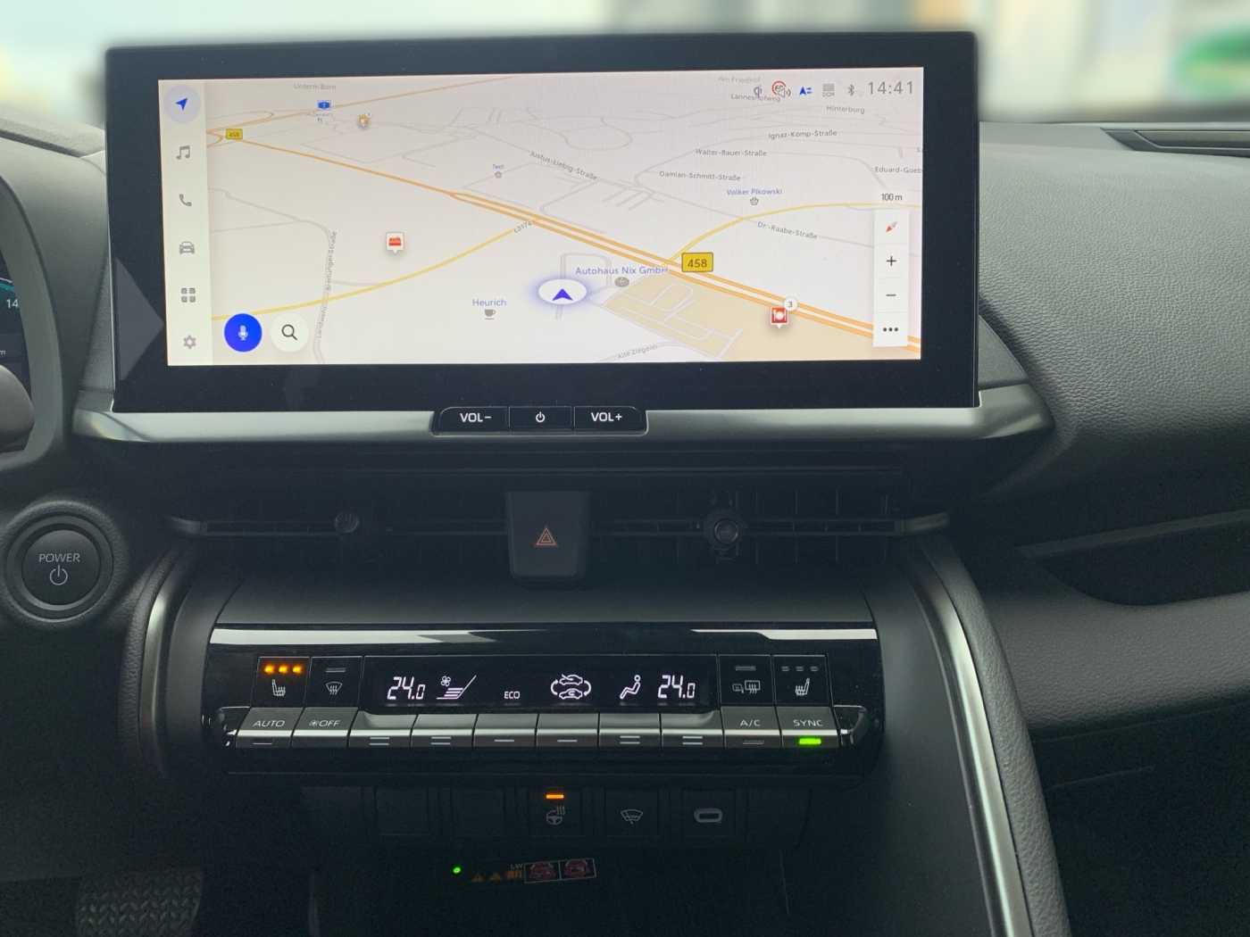 -Heckklappe, elektrisch öffnend / schließend -LED Lichtsignatur -LED-Scheinwerfer (Projektor-Typ) -18'' Leichtmetallfelgen, schwarz/glanzgedreht (5 Doppelspeichen),mit Bereifung 225/55R18 -USB (C) Anschluss, vorne -MyToyota Connected Services -Smartphone Integration, Apple Carplay und Android Auto -Multimedia-System Toyota Smart Connect Plus mit Cloud- und Onboard-Navigation -12,3 Multimedia Display -Bluetooth® Freisprecheinrichtung -Sprachsteuerung, Smart Voice Assistant -Lautsprecher 6 -USB (C) Anschluss, hinten -Einparksensoren hinten, mit automatischer Bremsunterstützung -Proactiver Fahrassistent (PDA) -Gurtkraftbegrenzer & Gurtstraffer für Fahrer und Beifahrer -Nothalte-Assistent (EDSS) -Geschwindigkeitsregelanlage, adaptiv (iACC) -Feststellbremse, elektrisch -Rückfahr-Assistent (RCTA) -Elektronische Stabilitätskontrolle (VSC) -Gurtwarnsystem vorne, optisch und akustisch -Verkehrszeichenerkennung (RSA) mit akustischer Warnung -Türverriegelung, Kindersicherung hinten -Reifendruck-Warnsystem (TPWS) -Toyota Safety Sense -Spurverfolgungs-Assistent (LTA)- -Wegfahrsperre -Pre-Collision-System mit Verkehrsteilnehmererkennung -eCall Notrufsystem -Kreuzungs-Assistent -Einparksensoren, vorne, mit automatischer Bremsunterstützung -Berganfahrhilfe (HAC) -Antiblockiersystem (ABS) mit elektronischer Bremskraftverteilung (EBD) -Geschwindigkeitsbegrenzer -Gurtwarnsystem hinten, optisch und akustisch -Ausstiegs-Assistent (SEA) -Rückfahrkamera -Pre-Collision-System mit Verkehrsteilnehmererkennung -Dynamisches Bremslicht -Fahrer Knieairbag -Notlenkassistent -Airbag, Beifahrer/Fahrer seitlich -Airbags (SRS) -Außenspiegel, elektrisch einstellbar -Außenspiegel, beheizbar -Außenspiegel, Einstiegsbeleuchtung -Toter-Winkel-Warner (BSM) -Lenkrad, beheizbar -Sonnenblende Fahrer, Schminkspiegel -Klimaautomatik, 2-Zonen -Sitz Beifahrer, Längsverstellung manuell -Akustische Licht-an-Warnung -Lenkrad, höhenverstellbar/manuell -Zentralverriegelung -Smartphone Ladegerät, kabellos -Sitz Beifahrer, Rückenlehne manuell -12V Anschluss vorne -Sitz Beifahrer, Höhenverstellung manuell -Fußmatten, Stoff vorne -Zentralverriegelung -Rücksitzbelegungserinnerung (RSRS) -Smart-Key-System -Kofferraumbeleuchtung -ISOFIX-Kindersitzbefestigung -Getränkehalter, vorne -Privacy Glas -Rückleuchten, LED -Fernlicht Assistent (AHB) -Regensensor -Nebelscheinwerfer LED -Abblendlichtautomatik -Bremsleuchten LED -Fensterheber, elektrisch vorne und hinten -LED-Tagfahrlicht -Follow-me-Home Funktion in die Hauptscheinwerfer integriert -Fensterheber, elektrisch ( One-Touch ) -LED-Scheinwerfer (Reflektor-Typ),