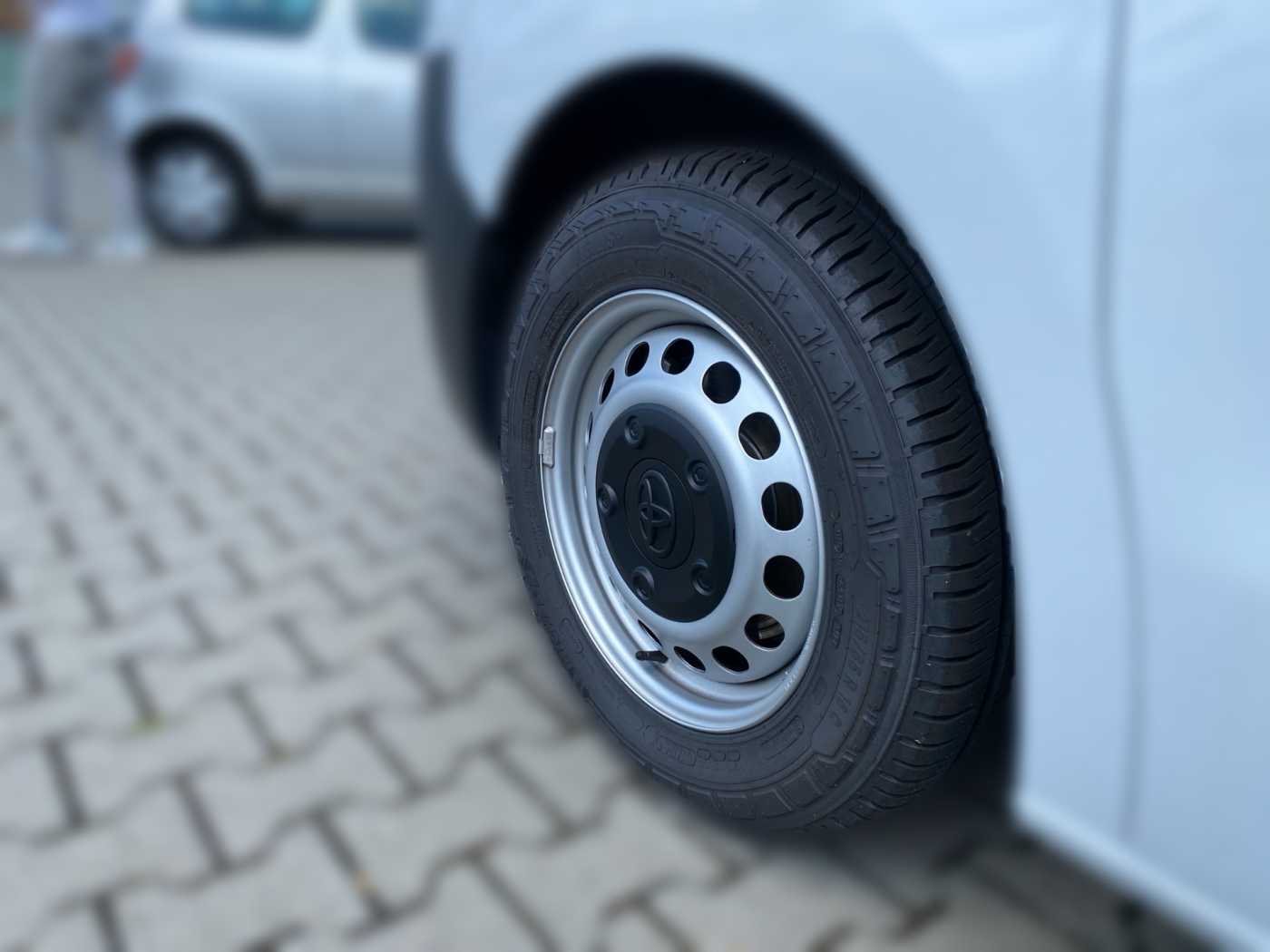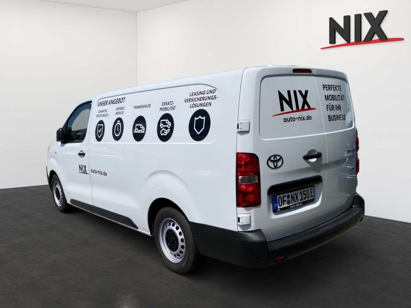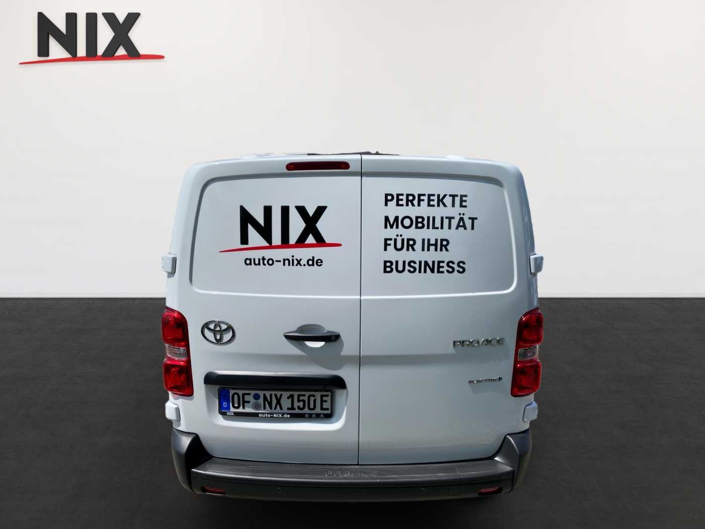 -Außenspiegel, elektrisch einklappbar -Außenspiegel, Toter-Winkel-Warner -Navigationssystem Toyota ProTouch&Go -Nebelscheinwerfer LED -Flankenschutz -Einparksensoren, vorne -Nebelscheinwerfer, Umrandung silbern -4 Lautsprecher -USB C Anschluss -10 Multimedia Display –Audiobedienelemente im Lenkrad integriert -Multimedia-Audiosystem -Geschwindigkeitsregelanlage -Fahrer- und Beifahrerairbag -Geschwindigkeitsbegrenzer, Verkehrsschilderkennung (RSA) -Spurhalteassistent -Einparksensoren, hinten -Reifendruck-Warnsystem (TPWS) -Notrufsystem -Airbag, Beifahrer/Fahrer vorn -Berganfahrhilfe (HAC) -Rückfahrkamera -Stoßfänger hinten, schwarz -Heckflügeltüren, verblecht -Stoßfänger vorne, schwarz -Türgriffe, schwarz außen -Außenspiegel, beheizbar -Außenspiegel, elektrisch einstellbar -Türen Seitenschutz, schwarz -Außenspiegel, schwarz -Schiebetür Beifahrerseite -Heckflügeltüren, Öffnungswinkel 180° -On-Board-Charger (11 kWh) -Feststellbremse, elektrisch -Ablagefächer, Türen vorne -Farb-Multi-Info-Display -Beifahrerdoppelsitzbank -12V Anschluss vorne -Getränkehalter, vorne -Klimaanlage, manuell -Laderaum, Trennwand geschlossen -Toyota Smart Cargo mit Durchladesystem, hochklappbarem Beifahrersitz und MobileOffice-Funktion -Zentralverriegelung, schlüsselintegrierte Funkfernbedienung/Blinkerbestätigung -Start-/Stop-Automatik -12V Anschluss, Laderaum -Sitz Fahrer, Rückenlehne manuell -Zentralverriegelung -Sitz Fahrer, Lordosenstütze -Handschuhfach, offen/oben -Deckenbeleuchtung (2), Laderaum -Leselampe, vorne -10 Multi-Info-Display -Sitz Fahrer, Längsverstellung manuell -Innenraumbeleuchtung, vorne -Lenkrad, Urethan -Armlehne Fahrer -Regensensor -Halogenscheinwerfer -Fensterheber, elektrisch ( One-Touch ) -Geräuschdämmungs-Schicht vordere Türscheiben -Privacy Glas -Fensterheber, elektrisch vorne -Abblendlichtautomatik -Fernlicht Assistent (AHB)