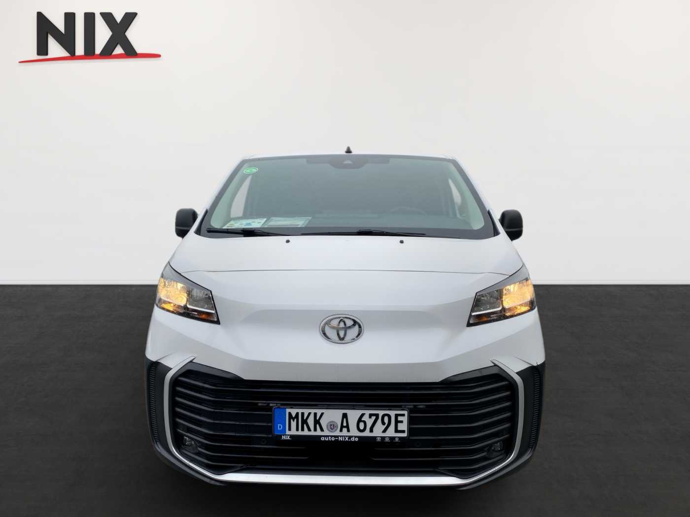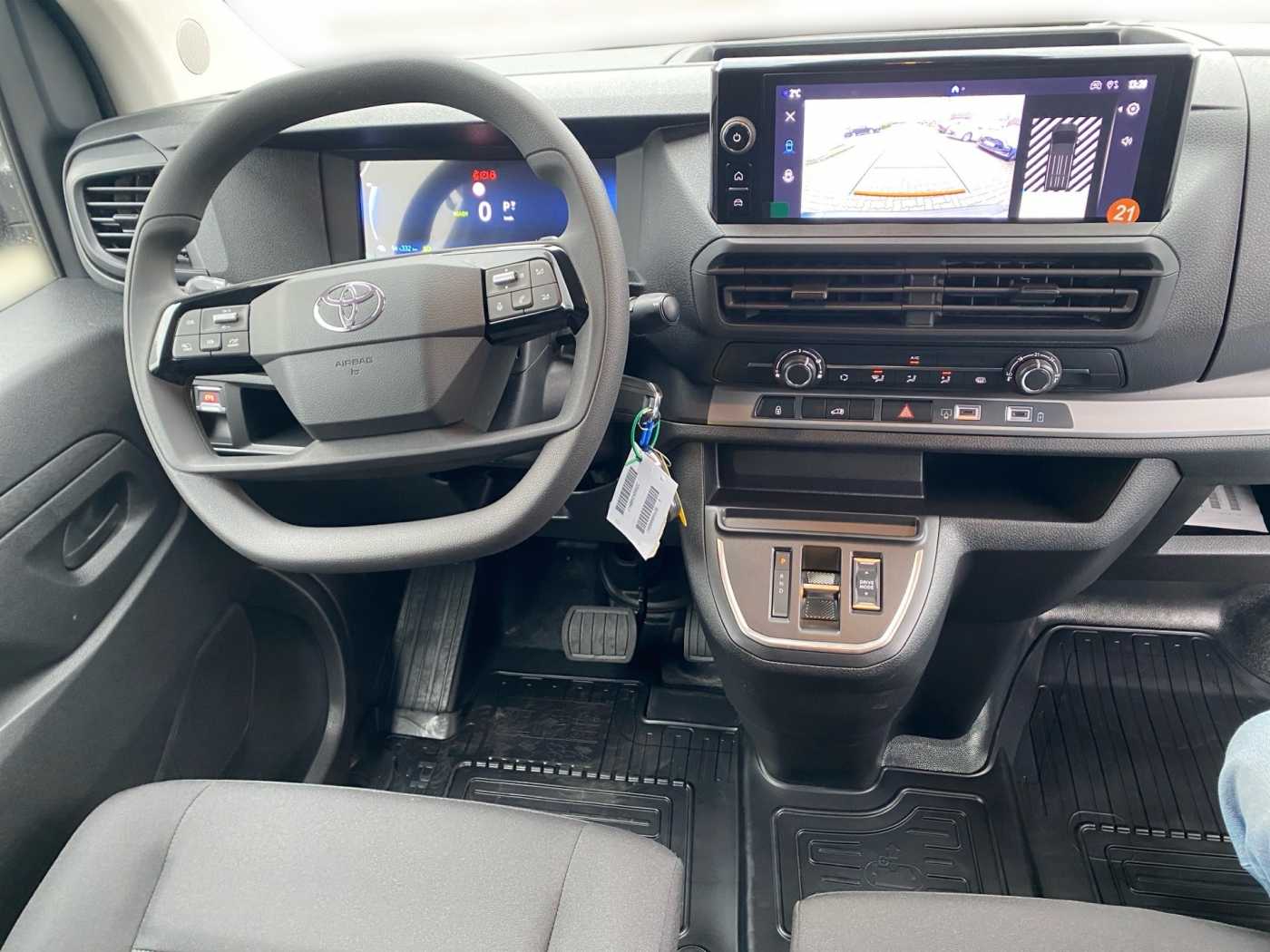 -Toyota ProTouch&Go Meister -Außenspiegel, elektrisch einklappbar -Außenspiegel, Toter-Winkel-Warner -Navigationssystem Toyota ProTouch&Go -Nebelscheinwerfer LED -Flankenschutz -Einparksensoren, vorne -Nebelscheinwerfer, Umrandung silbern -4 Lautsprecher -USB C Anschluss -10 Multimedia Display -Audiobedienelemente im Lenkrad integriert -Multimedia-Audiosystem -Geschwindigkeitsregelanlage -Fahrer- und Beifahrerairbag -Geschwindigkeitsbegrenzer, Verkehrsschilderkennung (RSA) -Spurhalteassistent -Einparksensoren, hinten -Reifendruck-Warnsystem (TPWS) -Airbag, Beifahrer/Fahrer vorn -Berganfahrhilfe (HAC) -Rückfahrkamera -Fahrer Aufmerksamkeitsassistent -Stoßfänger hinten, schwarz -Heckflügeltüren, verblecht -Stoßfänger vorne, schwarz -Türgriffe, schwarz außen -Außenspiegel, beheizbar -Außenspiegel, elektrisch einstellbar -Türen Seitenschutz, schwarz -Außenspiegel, schwarz -Schiebetür Beifahrerseite -Heckflügeltüren, Öffnungswinkel 180° -On-Board-Charger (11 kWh) -Feststellbremse, elektrisch -Ablagefächer, Türen vorne -Farb-Multi-Info-Display -Beifahrerdoppelsitzbank -12V Anschluss vorne -Getränkehalter, vorne -Klimaanlage, manuell -Laderaum, Trennwand geschlossen -Toyota Smart Cargo mit Durchladesystem, hochklappbarem Beifahrersitz und MobileOffice-Funktion -Zentralverriegelung, schlüsselintegrierte Funkfernbedienung/Blinkerbestätigung -Start-/Stop-Automatik -12V Anschluss, Laderaum -Sitz Fahrer, Rückenlehne manuell -Zentralverriegelung -Sitz Fahrer, Lordosenstütze -Handschuhfach, offen/oben -Deckenbeleuchtung (2), Laderaum -Leselampe, vorne -10 Multi-Info-Display -Sitz Fahrer, Längsverstellung manuell -Innenraumbeleuchtung, vorne -Lenkrad, Urethan -Armlehne Fahrer -Regensensor -Halogenscheinwerfer -Fensterheber, elektrisch ( One-Touch ) -Geräuschdämmungs-Schicht vordere Türscheiben -Privacy Glas -Fensterheber, elektrisch vorne -Abblendlichtautomatik -Fernlicht Assistent (AHB)