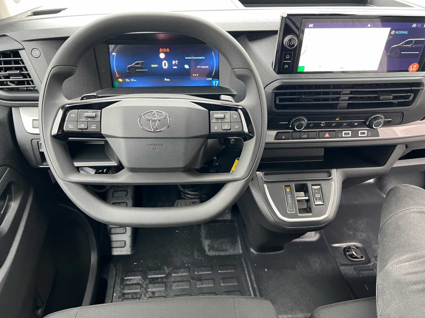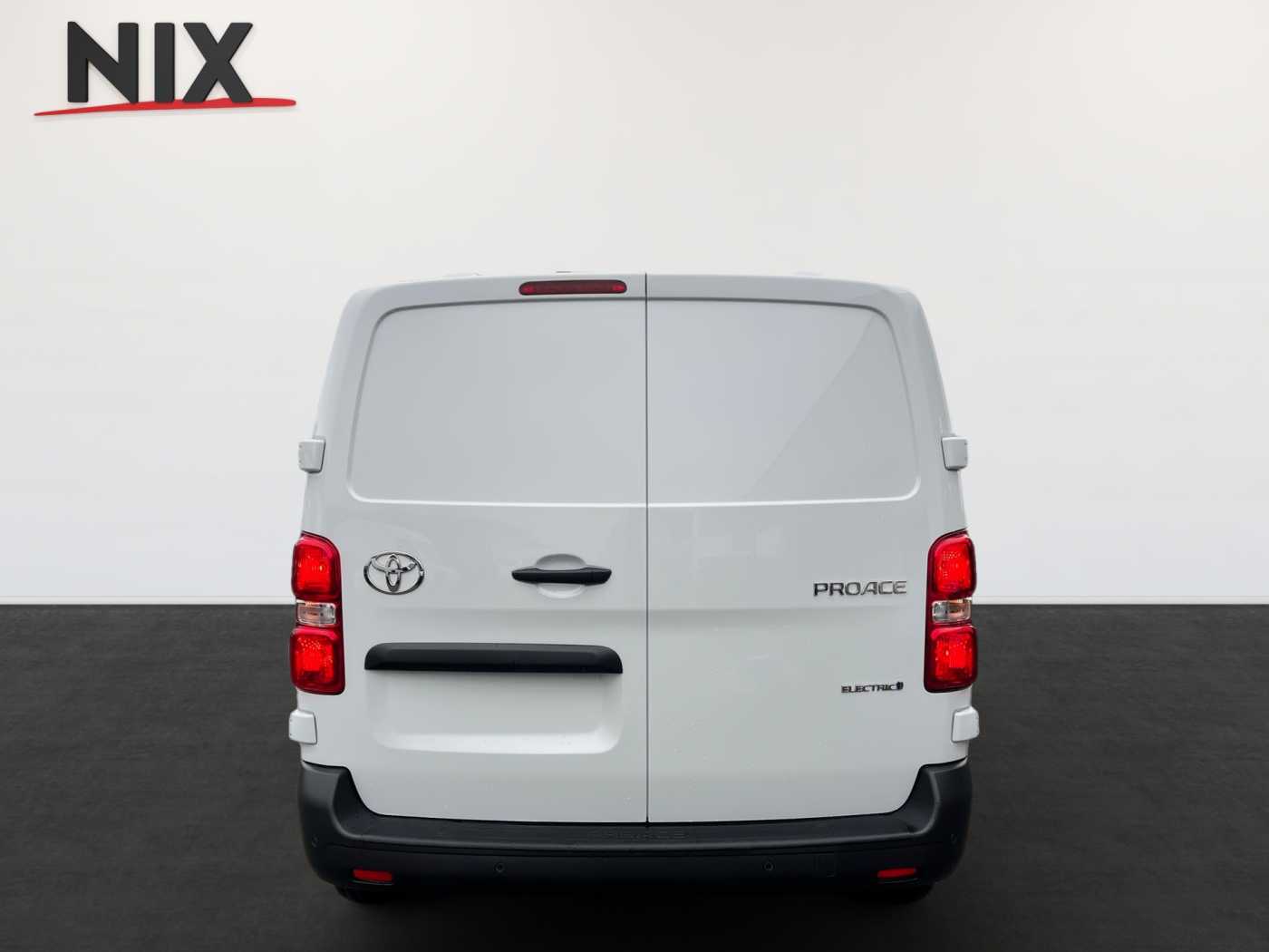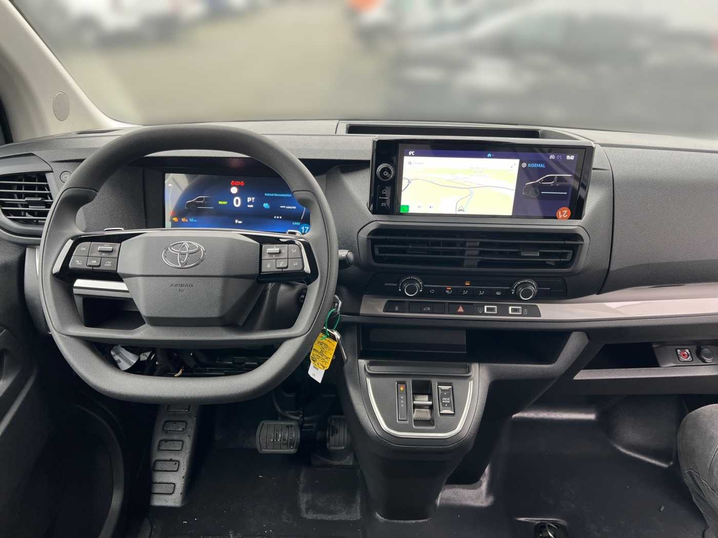 -Toyota ProTouch&Go Meister -Außenspiegel, elektrisch einklappbar -Außenspiegel, Toter-Winkel-Warner -Navigationssystem Toyota ProTouch&Go -Nebelscheinwerfer LED -Flankenschutz -Einparksensoren, vorne -Nebelscheinwerfer, Umrandung silbern -4 Lautsprecher -USB C Anschluss -10 Multimedia Display -Audiobedienelemente im Lenkrad integriert -Multimedia-Audiosystem -Geschwindigkeitsregelanlage -Fahrer- und Beifahrerairbag -Geschwindigkeitsbegrenzer, Verkehrsschilderkennung (RSA) -Spurhalteassistent -Einparksensoren, hinten -Reifendruck-Warnsystem (TPWS) -Airbag, Beifahrer/Fahrer vorn -Berganfahrhilfe (HAC) -Rückfahrkamera -Fahrer Aufmerksamkeitsassistent -Stoßfänger hinten, schwarz -Heckflügeltüren, verblecht -Stoßfänger vorne, schwarz -Türgriffe, schwarz außen -Außenspiegel, beheizbar -Außenspiegel, elektrisch einstellbar -Türen Seitenschutz, schwarz -Außenspiegel, schwarz -Schiebetür Beifahrerseite -Heckflügeltüren, Öffnungswinkel 180° -On-Board-Charger (11 kWh) -Feststellbremse, elektrisch -Ablagefächer, Türen vorne -Farb-Multi-Info-Display -Beifahrerdoppelsitzbank -12V Anschluss vorne -Getränkehalter, vorne -Klimaanlage, manuell -Laderaum, Trennwand geschlossen -Toyota Smart Cargo mit Durchladesystem, hochklappbarem Beifahrersitz und MobileOffice-Funktion -Zentralverriegelung, schlüsselintegrierte Funkfernbedienung/Blinkerbestätigung -Start-/Stop-Automatik -12V Anschluss, Laderaum -Sitz Fahrer, Rückenlehne manuell -Zentralverriegelung -Sitz Fahrer, Lordosenstütze -Handschuhfach, offen/oben -Deckenbeleuchtung (2), Laderaum -Leselampe, vorne -10 Multi-Info-Display -Sitz Fahrer, Längsverstellung manuell -Innenraumbeleuchtung, vorne -Lenkrad, Urethan -Armlehne Fahrer -Regensensor -Halogenscheinwerfer -Fensterheber, elektrisch ( One-Touch ) -Geräuschdämmungs-Schicht vordere Türscheiben -Privacy Glas -Fensterheber, elektrisch vorne -Abblendlichtautomatik -Fernlicht Assistent (AHB)
