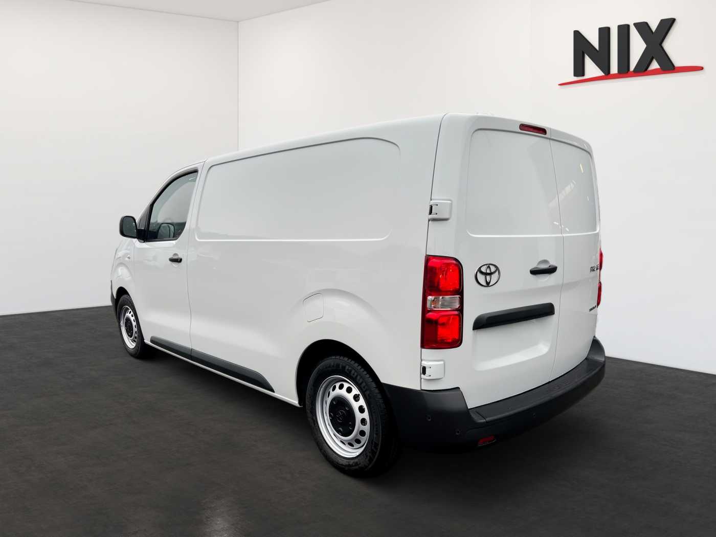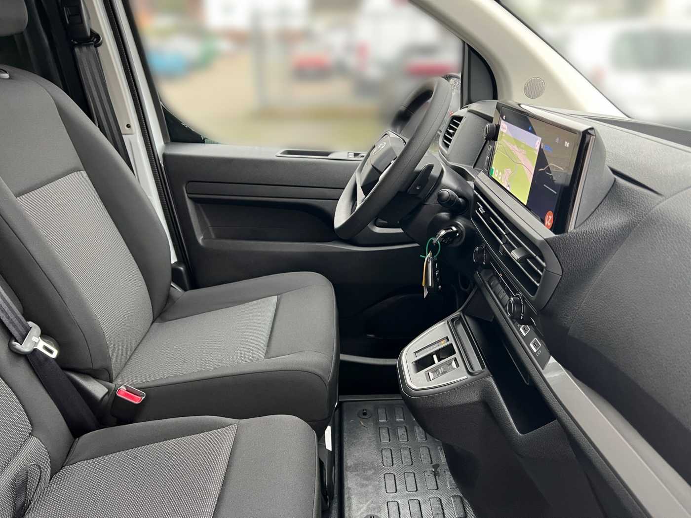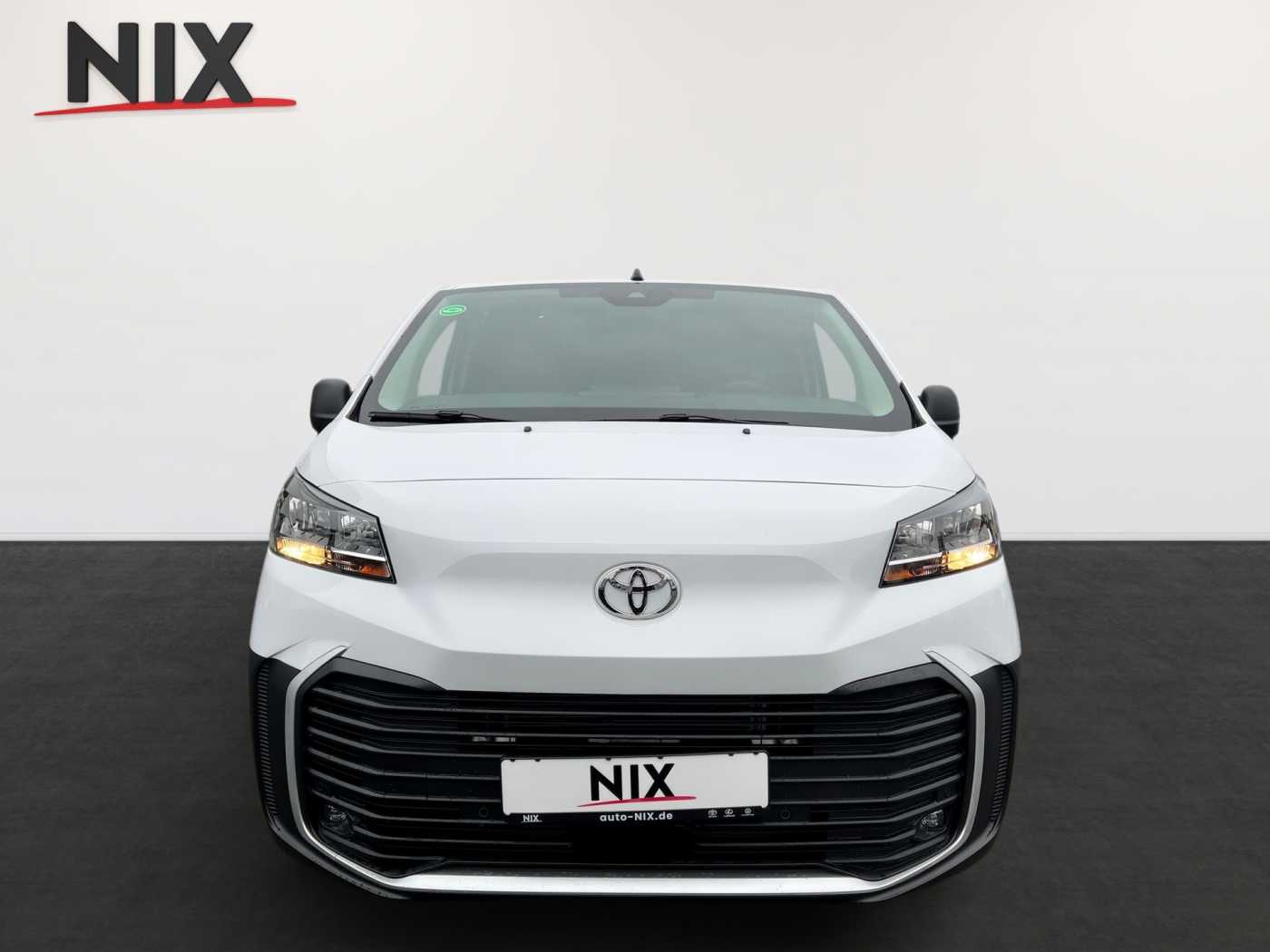 -Toyota ProTouch&Go Meister -Außenspiegel, elektrisch einklappbar -Außenspiegel, Toter-Winkel-Warner -Navigationssystem Toyota ProTouch&Go -Nebelscheinwerfer LED -Flankenschutz -Einparksensoren, vorne -Nebelscheinwerfer, Umrandung silbern -4 Lautsprecher -USB C Anschluss -10 Multimedia Display -Audiobedienelemente im Lenkrad integriert -Multimedia-Audiosystem -Geschwindigkeitsregelanlage -Fahrer- und Beifahrerairbag -Geschwindigkeitsbegrenzer, Verkehrsschilderkennung (RSA) -Spurhalteassistent -Einparksensoren, hinten -Reifendruck-Warnsystem (TPWS) -Airbag, Beifahrer/Fahrer vorn -Berganfahrhilfe (HAC) -Rückfahrkamera -Fahrer Aufmerksamkeitsassistent -Stoßfänger hinten, schwarz -Heckflügeltüren, verblecht -Stoßfänger vorne, schwarz -Türgriffe, schwarz außen -Außenspiegel, beheizbar -Außenspiegel, elektrisch einstellbar -Türen Seitenschutz, schwarz -Außenspiegel, schwarz -Schiebetür Beifahrerseite -Heckflügeltüren, Öffnungswinkel 180° -On-Board-Charger (11 kWh) -Feststellbremse, elektrisch -Ablagefächer, Türen vorne -Farb-Multi-Info-Display -Beifahrerdoppelsitzbank -12V Anschluss vorne -Getränkehalter, vorne -Klimaanlage, manuell -Laderaum, Trennwand geschlossen -Toyota Smart Cargo mit Durchladesystem, hochklappbarem Beifahrersitz und MobileOffice-Funktion -Zentralverriegelung, schlüsselintegrierte Funkfernbedienung/Blinkerbestätigung -Start-/Stop-Automatik -12V Anschluss, Laderaum -Sitz Fahrer, Rückenlehne manuell -Zentralverriegelung -Sitz Fahrer, Lordosenstütze -Handschuhfach, offen/oben -Deckenbeleuchtung (2), Laderaum -Leselampe, vorne -10 Multi-Info-Display -Sitz Fahrer, Längsverstellung manuell -Innenraumbeleuchtung, vorne -Lenkrad, Urethan -Armlehne Fahrer -Regensensor -Halogenscheinwerfer -Fensterheber, elektrisch ( One-Touch ) -Geräuschdämmungs-Schicht vordere Türscheiben -Privacy Glas -Fensterheber, elektrisch vorne -Abblendlichtautomatik -Fernlicht Assistent (AHB)