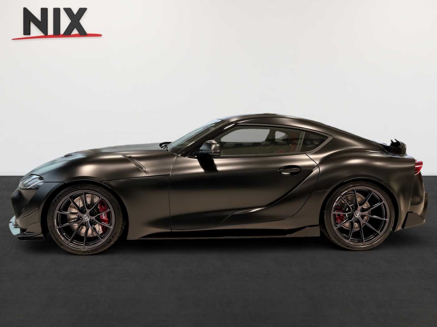 KW V3 Clubsport Fahrwerk, Akrapovic Titan-Auspuffendrohr-Finish, 20''-LM Metal Star titanschwarz hinten, A90 Final Edition front spoiler, Gelochte Bremsscheiben vorne/hinten, Schwanenhals Heckflügel Carbon, Lufteinlass Motorhaube Carbonfaser, 19'' 10 Speichen titanschwarze Alus vorne, Rote Bremssättel vorne mit GR-Logo, Extra große Vorderradbremsen